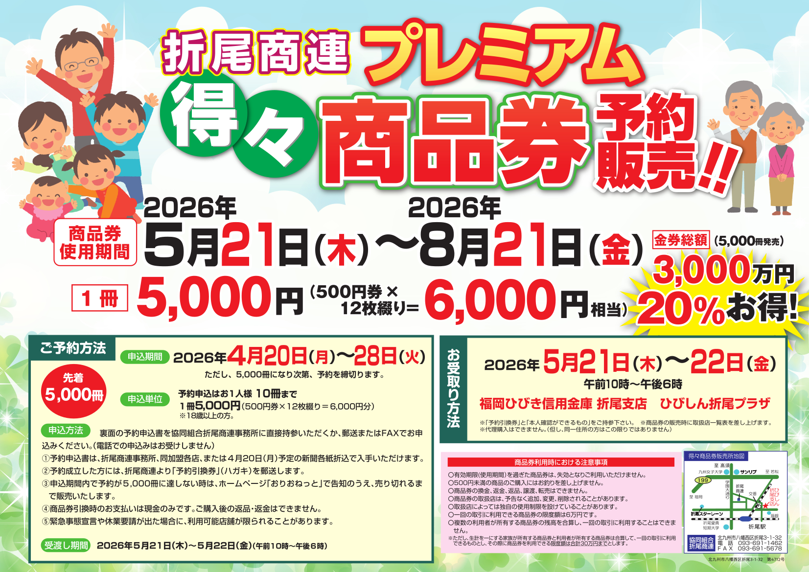 折尾商連プレミアム得々商品券予約販売のお知らせ